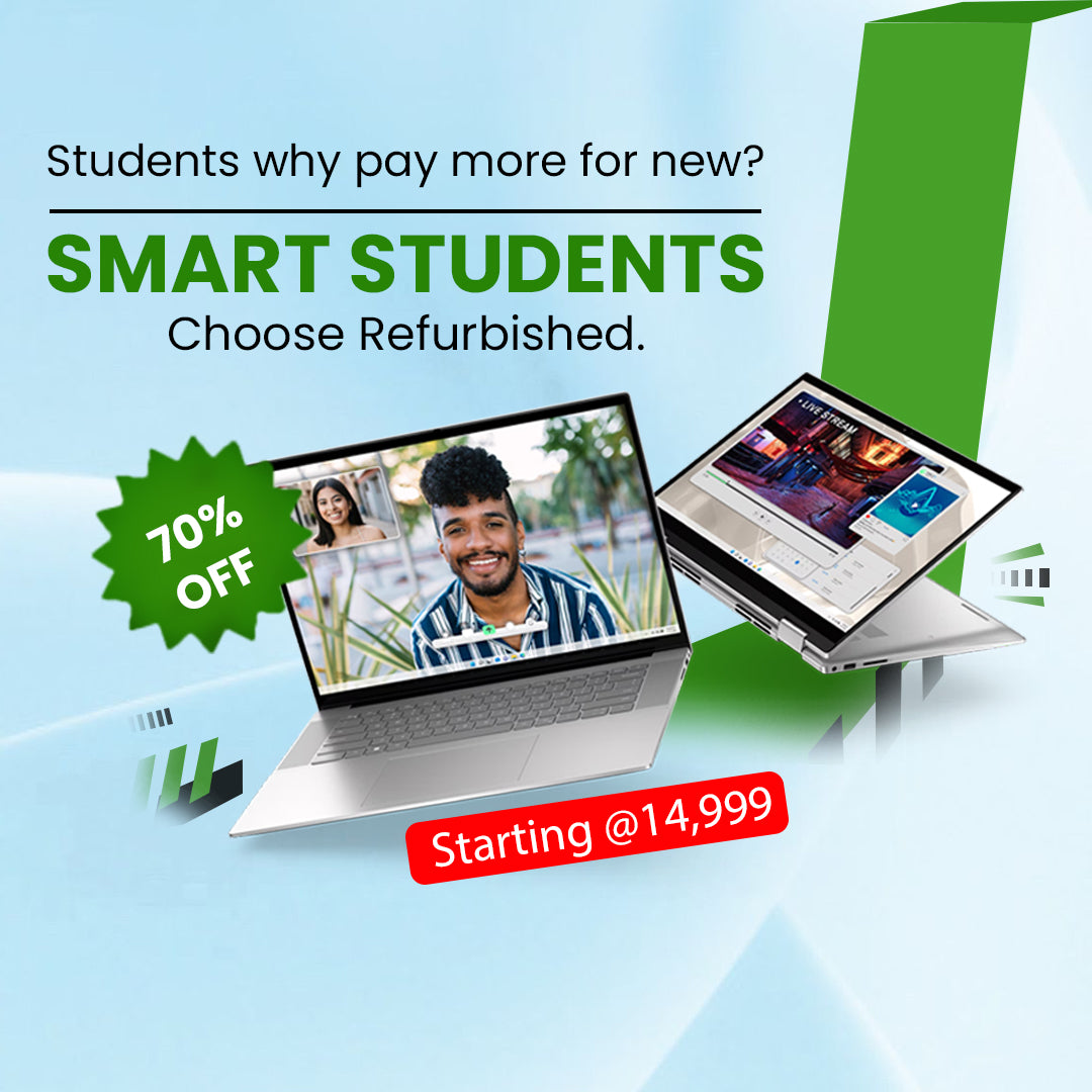 Refurbished laptops offer the same performance as new laptops at 50–80% lower prices. They come with warranty, are quality-tested, and are a smart choice for students, professionals, and office users.